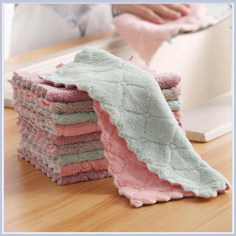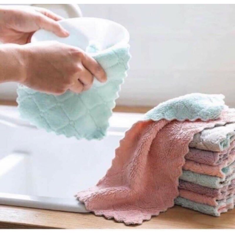 Khăn này siêu thấm nước, thiết kế sz nhỏ nhỏ vừa vừa 27.5 x 16cm cầm lau chén bát hay lau bếp cũng vừa tay gọn gàng. Mặt khăn thiết kế 2 màu toàn các màu xinh xinh nhẹ nhàng.