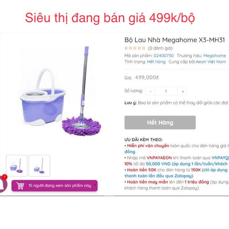 LƯU Ý: * LƯU Ý: Thùng có kích thước đóng gói khá to nên phí vận chuyển bị tính cao, KH có thể mua thêm bông lau thay thế để đơn đủ giá trị từ 300k trở lên, áp mã FRESHIP EXTRA của shop đc giảm tối đa 70k ship ạ. Cần hỗ trợ thêm ib shop nhé ^^SHOP LÀ ĐƠN VỊ ĐẠI LÝ CHÍNH HÃNG CỦA MEGAHOME VIỆT NAM. Hiện trên shopee có rất nhiều shop bán hàng nhái, photoshop là hàng chính hãng nên khiến KH dễ nhầm lẫn là cùng loại. Sản phẩm luôn có tem chính hãng + giấy bảo hành trong thùng