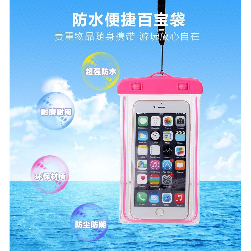 Giới thiệu [Xả Hàng] Túi Chống Nước Trong Suốt viền Dạ quang phát sáng cho Điện thoại 6.5" cao 162mm