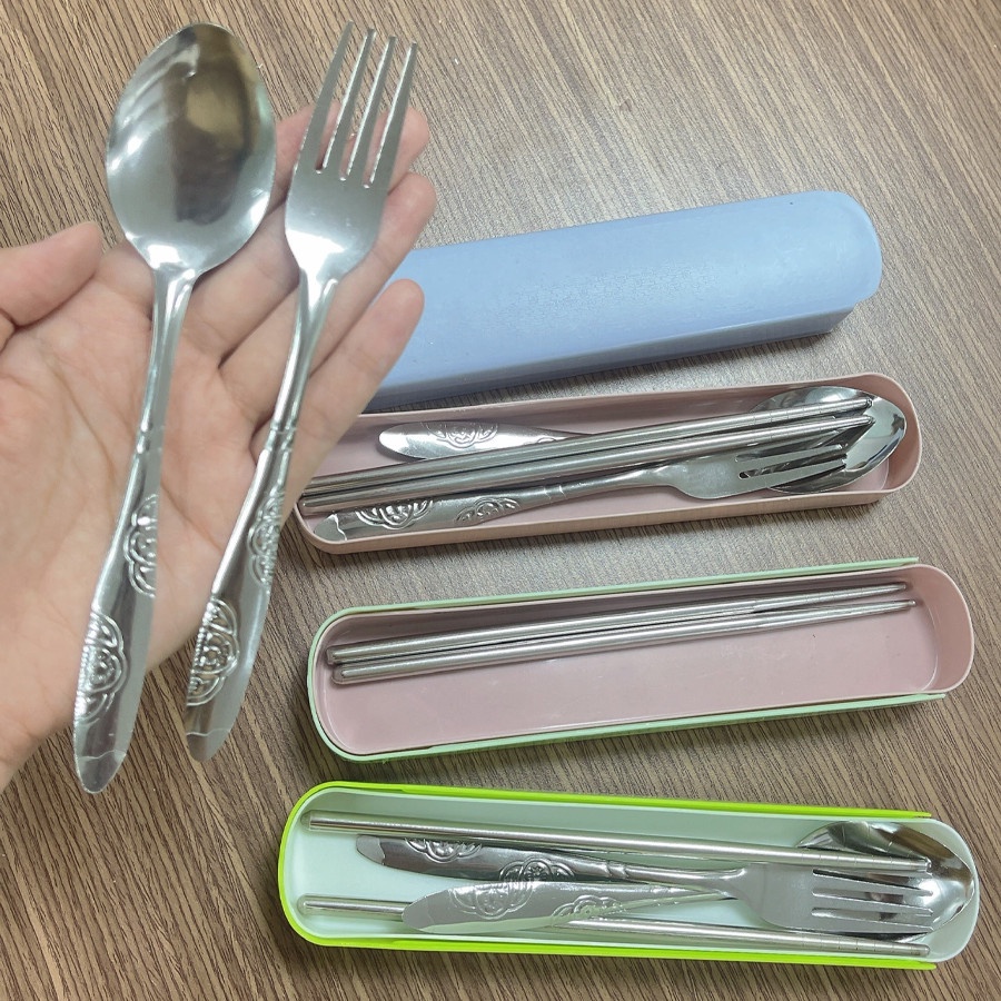 - Bộ Thìa Đũa Dĩa Cá Nhân Tiện Dụng / Bộ Muỗng Đũa Nĩa Văn Phòng INOX Cao Cấp