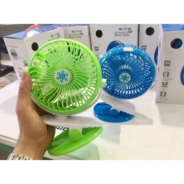 - Quạt kẹp sạc pin tích điện F168 thiết kế nhỏ gọn, thuận tiện mang theo trong các buổi cắm trại, các chuyến du lịch, cho trẻ nhỏ mang tới trường, đặt để bàn làm việc, quạt cho trẻ sơ sinh, đi picnic…. vô cùng tiện lợi khi mất điện hoặc nơi công cộng không có điện hay quạt.