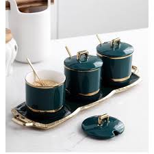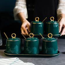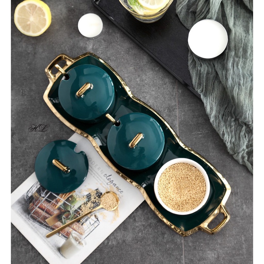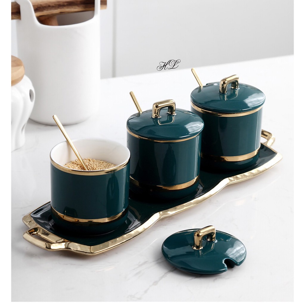 Bộ Đựng Gia Vị Sứ Xanh Tròn Có Khay Đồ Dùng Nhà Bếp Cao Cấp Gía Rẻ
