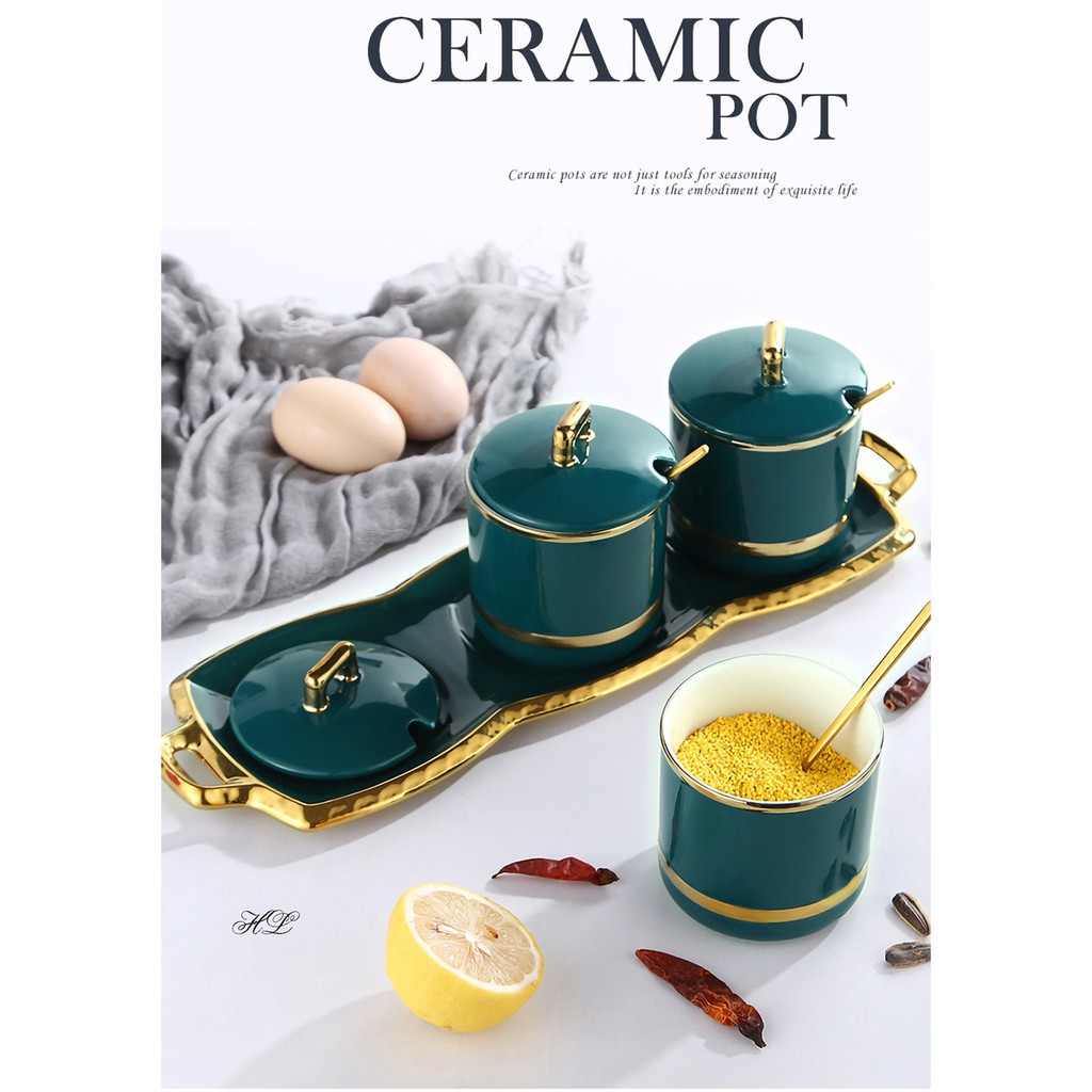 Bộ Đựng Gia Vị Sứ Xanh Tròn Có Khay Đồ Dùng Nhà Bếp Cao Cấp Gía RẻChất liệu: gốm sứ cao cấp
