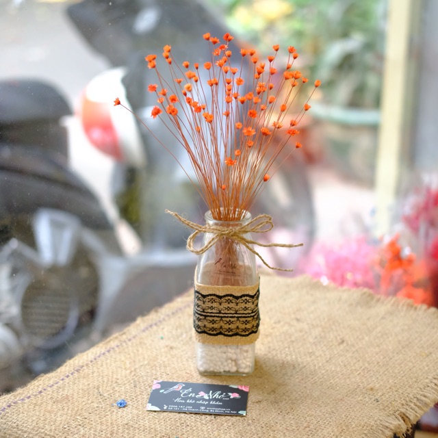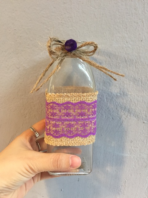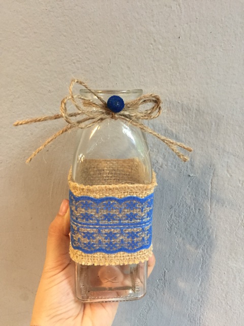 [XẢ KHO 3 NGÀY] Lọ thủy tinh đáy vuông trang trí ren (không bao gồm hoa)