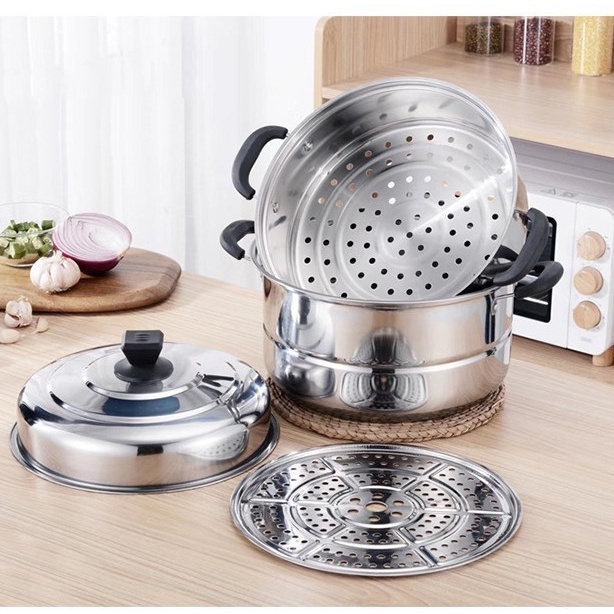 Nhà cửa & Đời sống > Dụng cụ nhà bếp > Nồi || [XẢ KHO 3 NGÀY] Nồi hấp xửng inox 3 tầng siêu to hấp bánh, xôi, luộc gà nguyên conCòn hàng