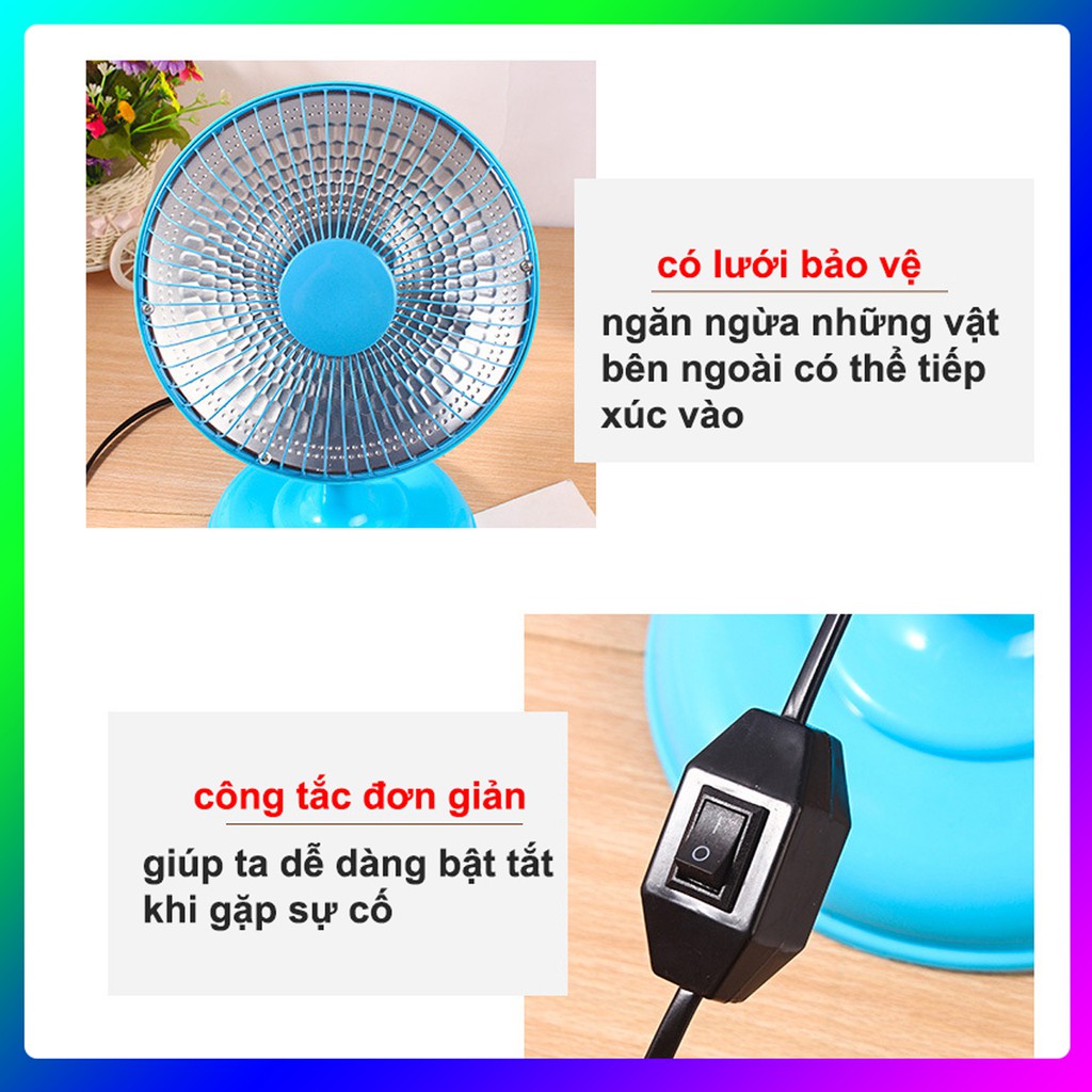 -tiết kiệm điện năng, an toàn với người sử dụng. Với kiểu dạng thiết kế đăng năng bạn có thể mang Quạt sưởi mini đến bất kì đâu một cách dễ dàng không tốn diện tích sử dụng.