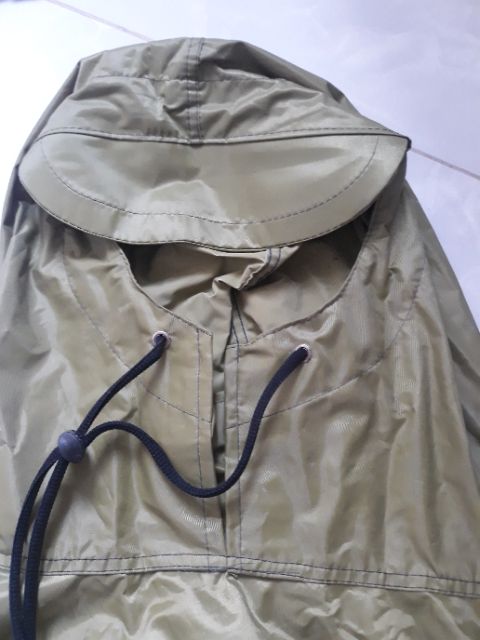 - Áo mưa cánh dơi dạng xẻ tà 2 bên, có nút bấm.- Cổ may bằng máy cuốn sườn 2 kim, có ép sim để chống nước ngấm vào đường chỉ.