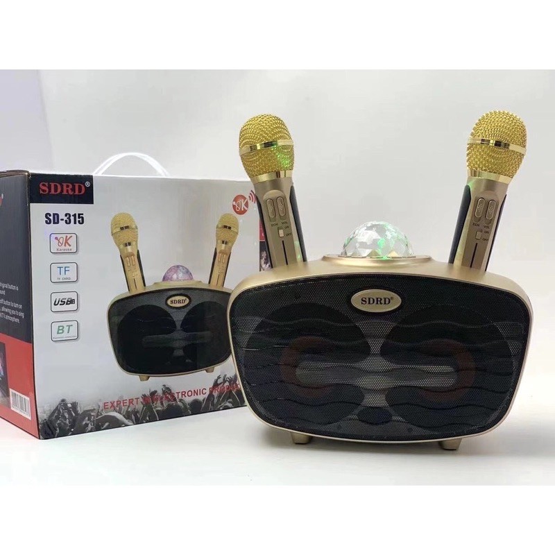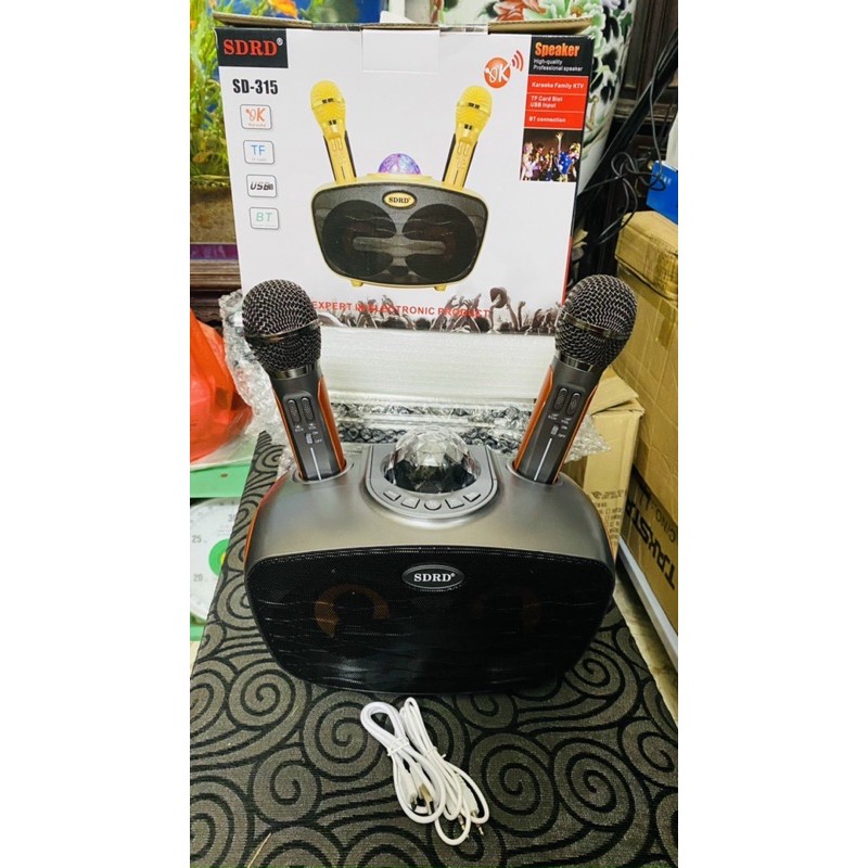 👉 Loa Bluetooth Karaoke SD315 được coi là sản phẩm loa Bluetooth karaoke song ca tuyệt vời, được trang bị 2 micro đi kèm với các hiệu ứng đặc biệt,