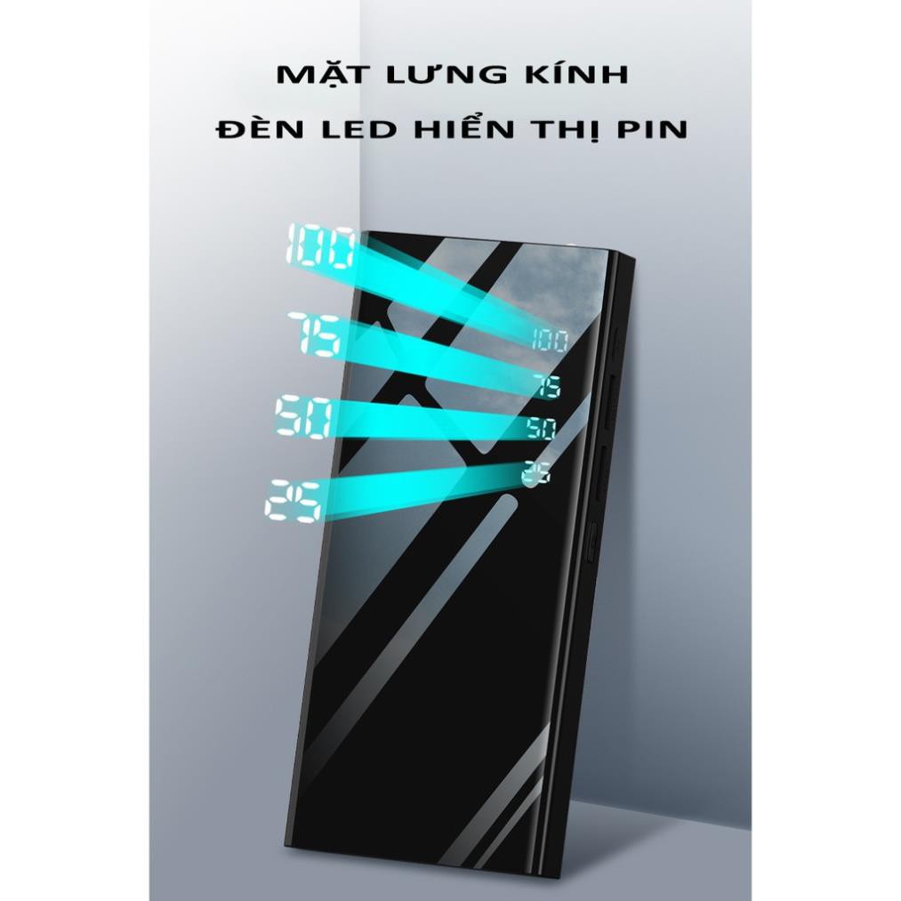 [Xả Kho Bán Lỗ] Pin Sạc Dự Phòng 30.000mAh Hiển Thị % Pin Có Đèn Pin - Mặt Kính Sang Trọng - Dòng Sạc Chuẩn