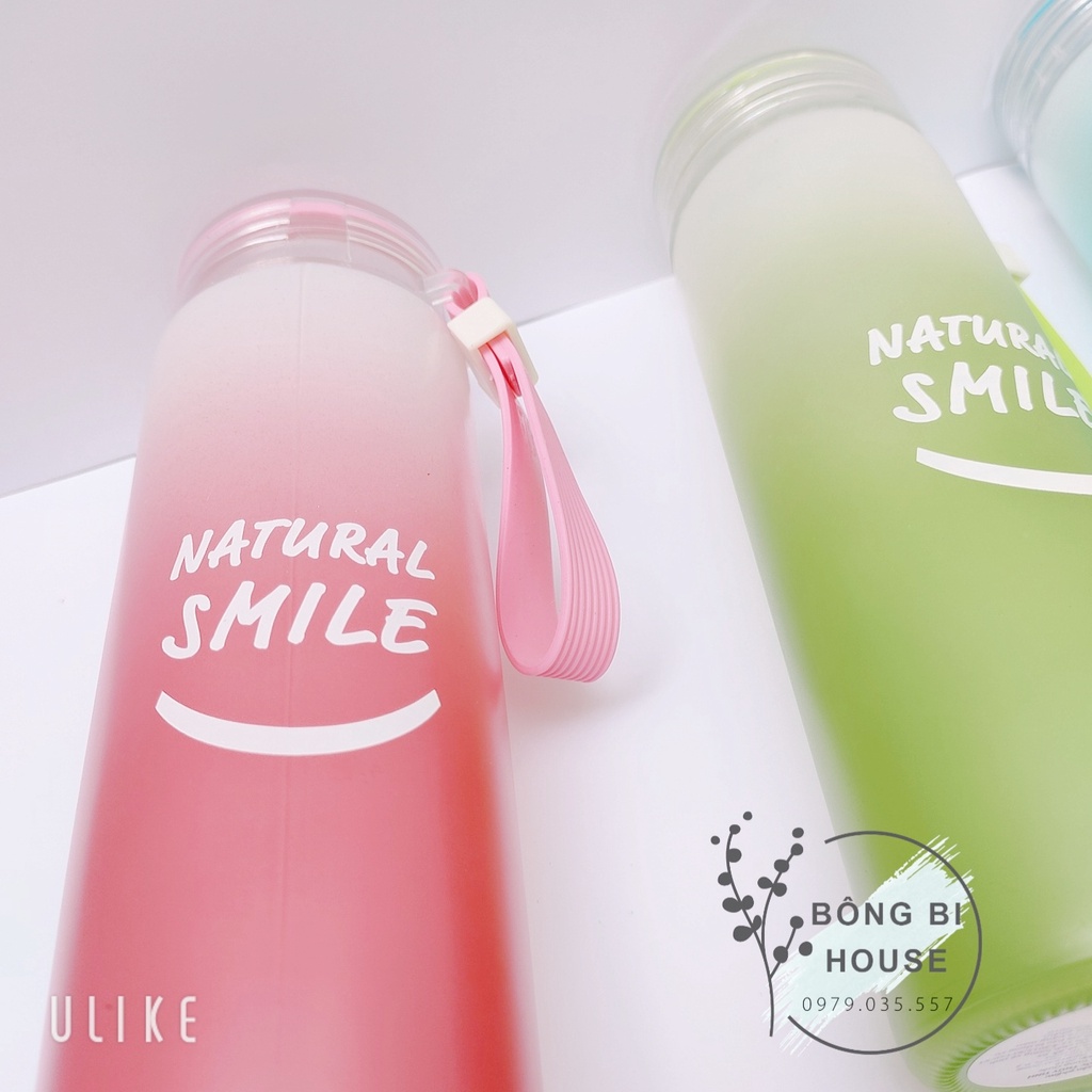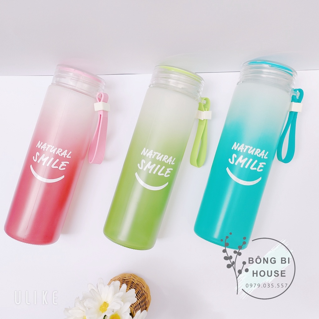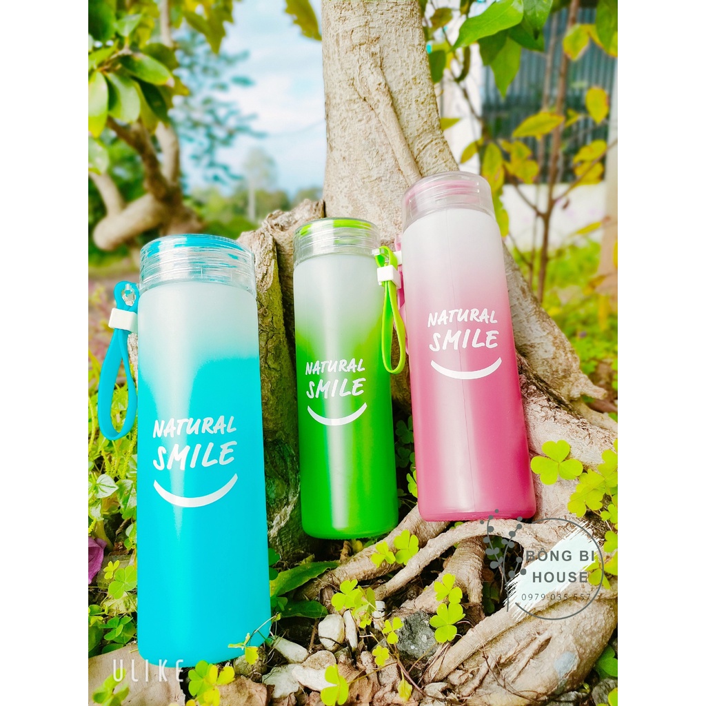 XẢ KHO - Bình nước thủy tinh NATURAL SMILE bình đựng nước 480ml bình nước detox có quai xách BONGBIHOUSE