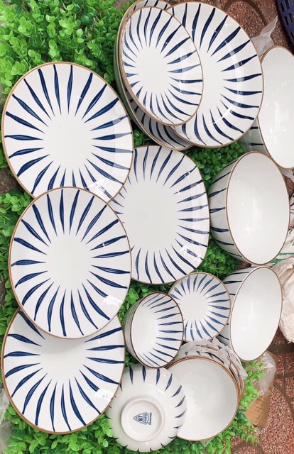 Nhà cửa & Đời sống > Bộ đồ bàn ăn > Dĩa || Xả Kho - Bộ Bát Đĩa Bát Tràng Kẻ Sọc mã 606 bao gồm 21 mónCòn hàng