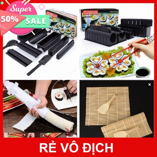 Giới thiệu [XÃ KHO] BỘ DỤNG CỤ LÀM SUSHI 10 MÓN - CUỘN BẰNG GỖ - ỐNG TRẮNG [HCM]