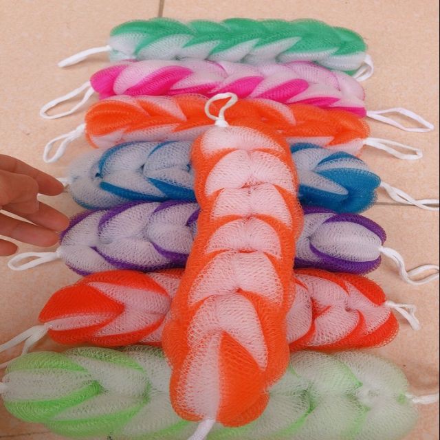 Xả kho Bông tắm dài_ cọ lưng_loại 7 mắt và 9 mắt freeship có video kèm ảnh thật