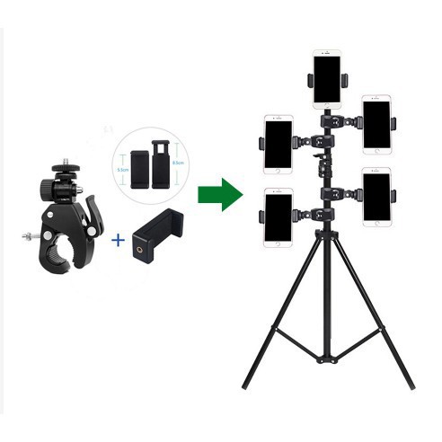 Bạn đã có cây tripod và muốn livestrem, quay phim nhiều máy cùng lúc thì sản phẩm Giá đỡ kẹp điện thoại gắn vào tripod là sự lựa chọn cho bạn. Bạn chỉ cần kẹp giá đỡ kết hợp với kẹp điện thoại vào chân tripod, cần bao nhiêu máy thì kẹp bấy nhiêu giá đỡ kẹp điện thoại là bạn có thể bắt đầu công việc của mình.