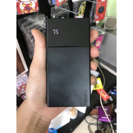 - Pin sạc dự phòng sạc nhanh Morui LCD 10000mAh được thiết kế với kiểu dáng nhỏ gọn, mỏng giúp bạn dễ dàng cất vào ba lô, túi xách mang đi bất cứ nơi đâu nhất là trong những chuyến công tác, du lịch dài ngày cùng bạn bè. Pin có dung lượng lớn 10000mAh, chu kì sạc 1000 lần, sạc nhanh chóng, hiệu quả và an toàn cho thiết bị của bạn. Sản phẩm có 2 cổng USB: 5V - 1A và 5V - 2.1A có thể sạc hai thiết bị cùng lúc.