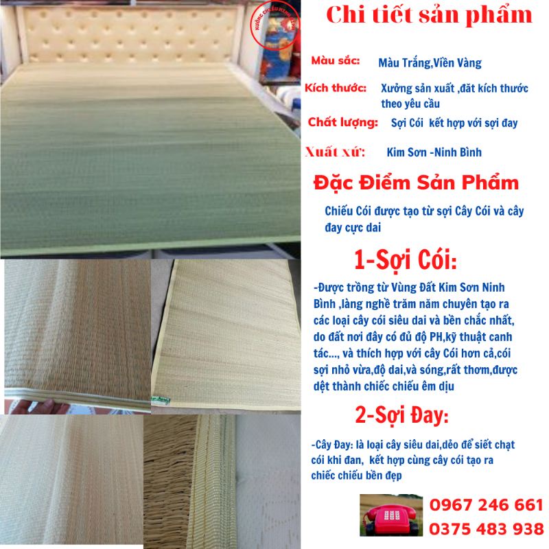 ✅: LOẠI 1- CÓI TRẮNG VIỀN: là loại chiếu truyền thống có Viền sử dụng Vải cao cấp bền đẹp,sóng cói