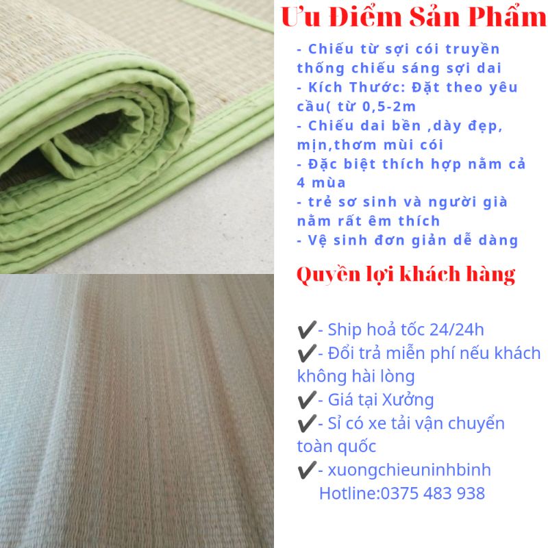 - Chiếu cố độ bền cao 7-9 năm, vì vậy cói chuẩn giá sẽ hơi mắc hơn Nhưng tại xưởng sản xuất phân phối hàng đầu thì giá sẽ luôn thấp nhất so với thị trường mình Cam kết