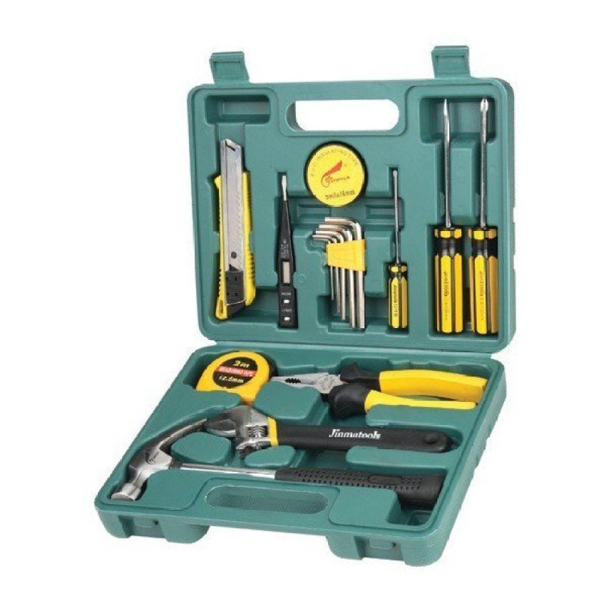 - Gồm 15 dụng cụ: 01 Búa (25cm) + 01 Mỏ lết 8’ + 01 Bút thử điện + + 01 Kìm điện (17.5cm). + 01 Dao rọc giấy cao cấp (16cm). Bộ lục giác ngoài 5 cây + 01 cuộn băng keo đen dán điện. + 01 thước kéo 2m. + 01 Tô vít đầu bằng 6’ + 01 Tô vít đầu vuông 8’ + 01 Tô vít đầu vuông 6’+ 1 hộp đựng