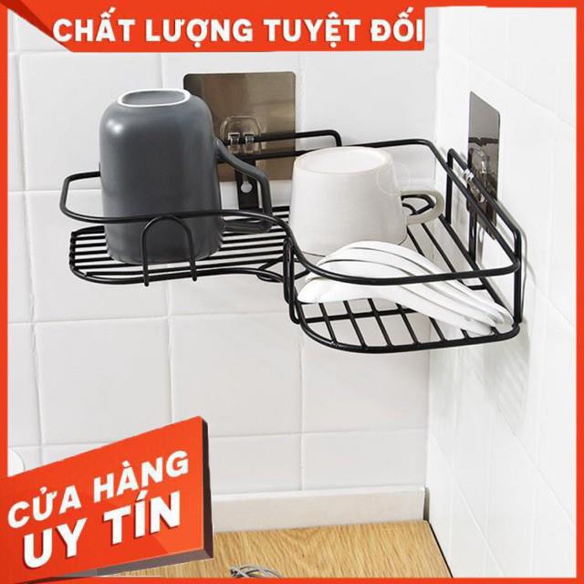 [XẢ KHO+FREE SHIP] KỆ GÓC INOX DÁN TƯỜNG ĐEN VIỀN UỐN LƯỢN TIẾT KIỆM KHÔNG GIAN