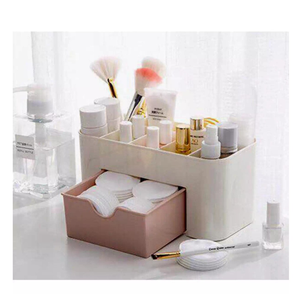 ➡ Chất liệu nhựa cứng cáp,nguyên khối k phải loại lắp ráp với nhiều ngăn chứa và 1 ngăn kéo giúp cho việc cất giữ mỹ phẩm gọn gàng, đẹp mắt, thuận tiện khi sử dụng.