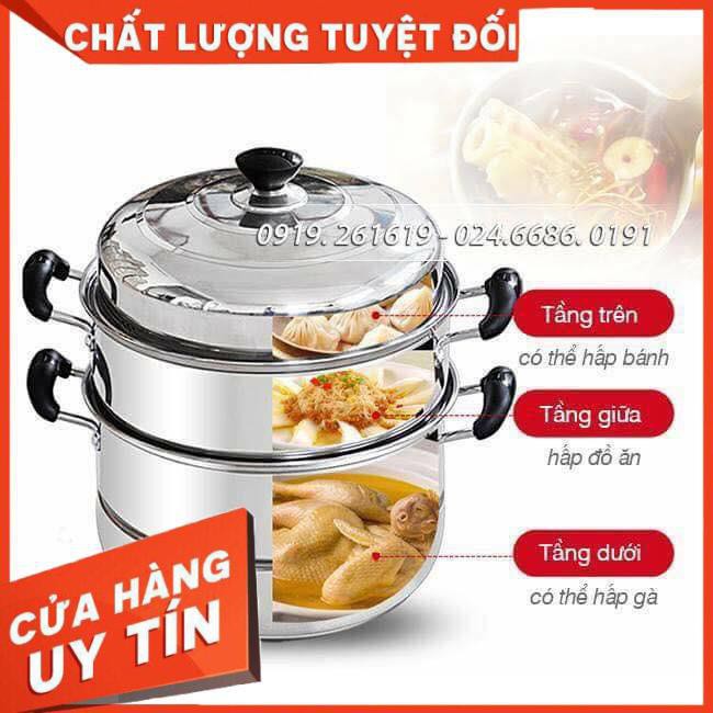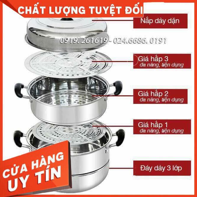[Xả kho + free ship] Nồi Hấp 3 Tầng Inox hàng đẹp loại 28cm và 32cm hàng dầy đẹp