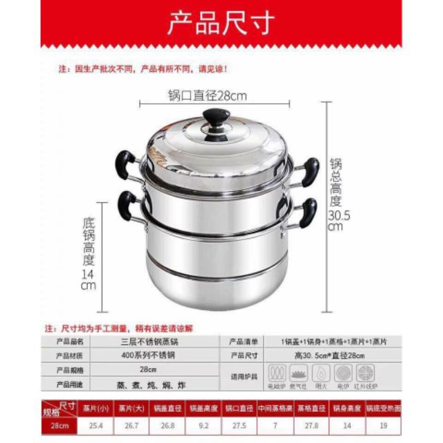 ✅√ Nồi 3 tầng bằng chất liệu Inox, đường kính 28cm