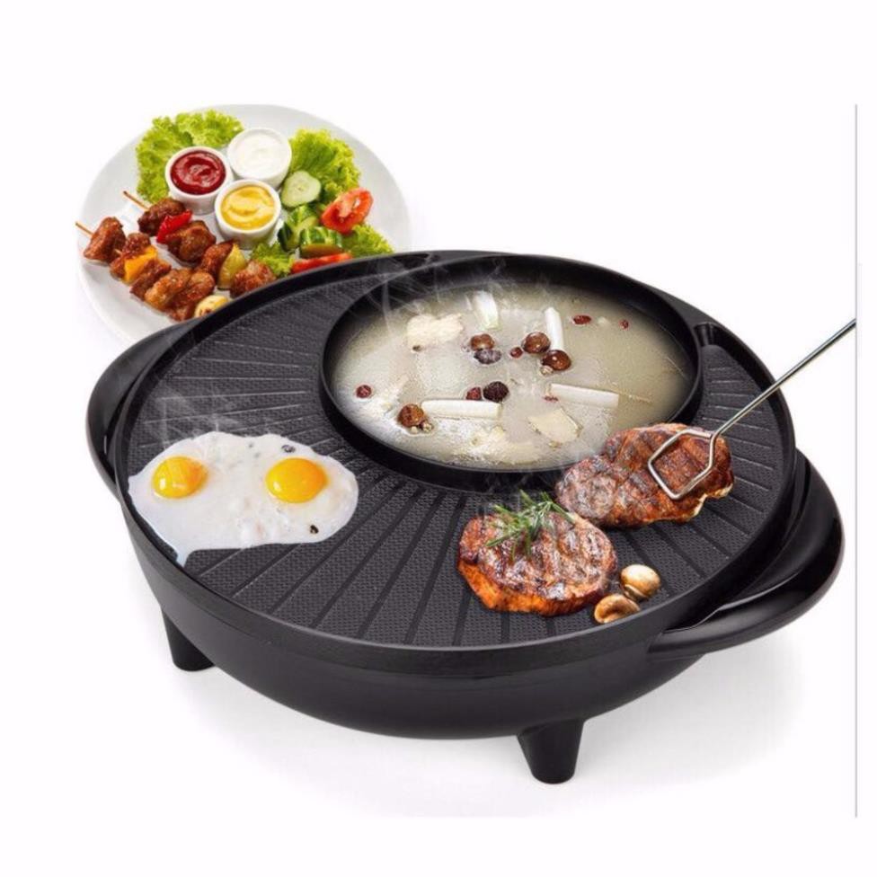 - 2 chức năng trong 1 sản phẩm bếp lẩu nướng đa năng, bạn có thể vừa thưởng thức lẩu và có thể nướng thịt, cá, ngao, sò, ốc, hến... ở phần nướng bên cạnh.