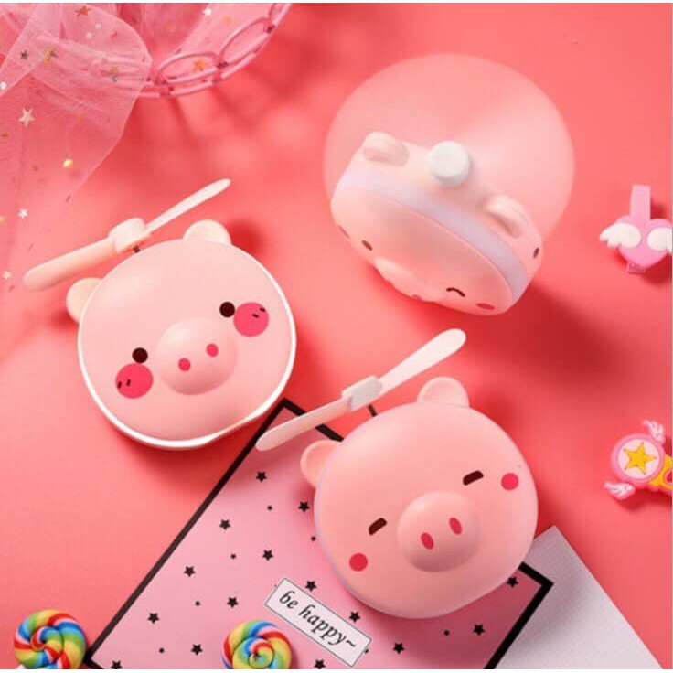 Điện Thoại & Phụ Kiện > Phụ kiện > Quạt USB & Quạt điện thoại || [XẢ KHO+FREE SHIP] Quạt tích điện mini hình lợn có đèn led kèm quạt 3in1Còn hàng