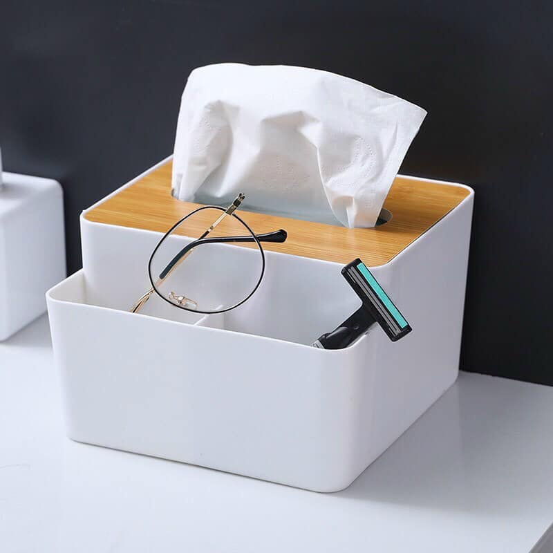 - Hộp đựng khăn giấy bằng nhựa chữ nhật nắp gỗ phù hợp sử dụng trong gia đình, khách sạn ...- Kích thước lớn có thể chứa hầu hết các hộp khăn giấy chữ nhật, dễ dàng thay thế, chỉ cần nhấc nắp và để hộp khăn giấy carton vào bên trong.