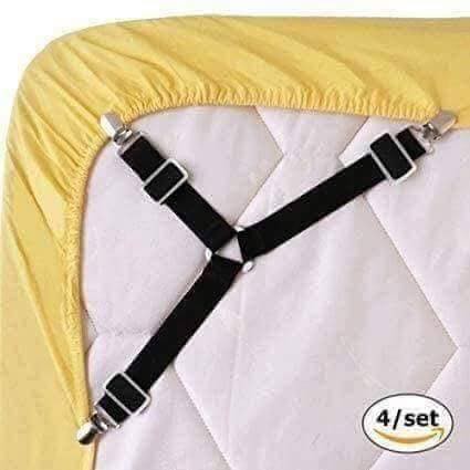 Kẹp ga giường set 4 cái✔ Chiếc kẹp được làm bằng chất liệu thun có độ co giãn tốt, đầu kẹp được làm bằng nhựa cứng, bọc thép bên ngoài, cực kỳ chắc chắn.
