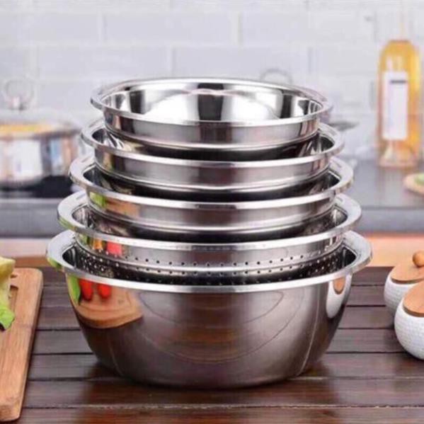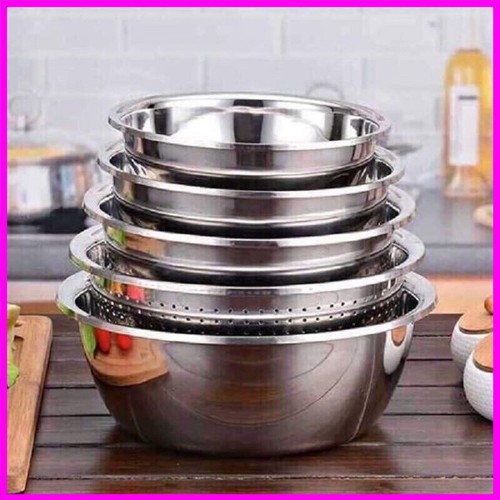 Nhà cửa & Đời sống > Dụng cụ chăm sóc nhà cửa > Chậu, xô & gáo nước || [Xả kho + free ship] SET 5 MÓN RỔ VÀ THAU INOX CAO CẤPCòn hàng