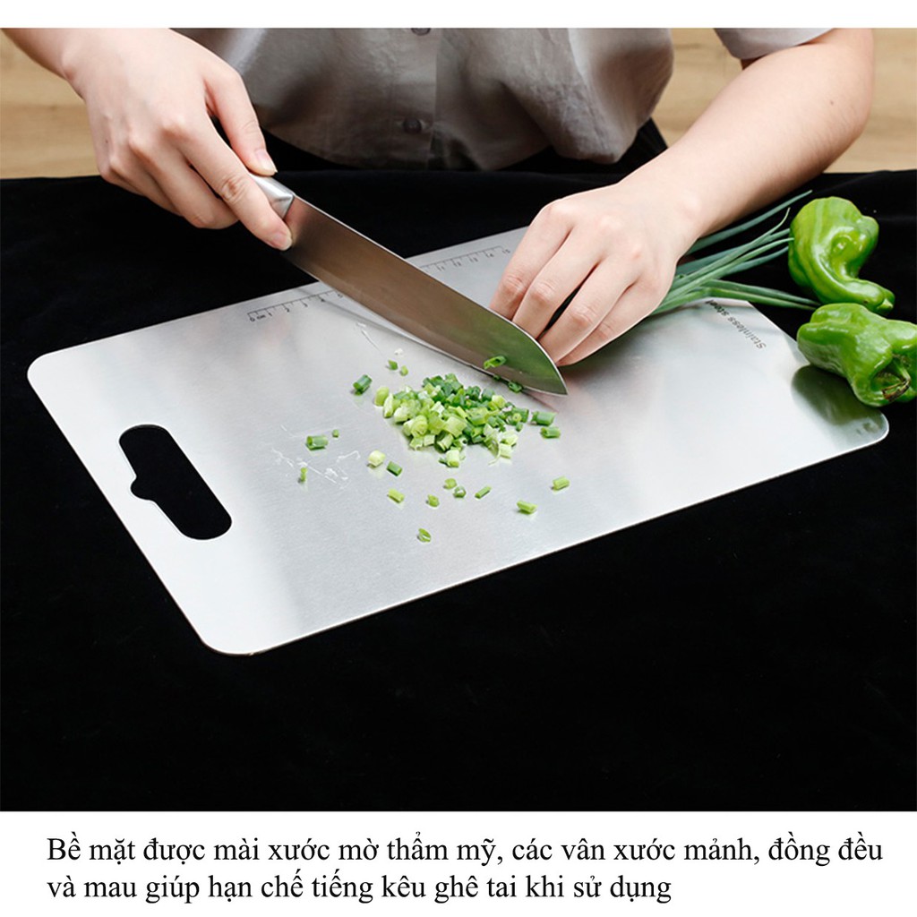 Giới thiệu [XẢ KHO+FREE SHIP] Thớt Inox SU304 Kháng Khuẩn Sử Dụng Hai Mặt Tiện Ích