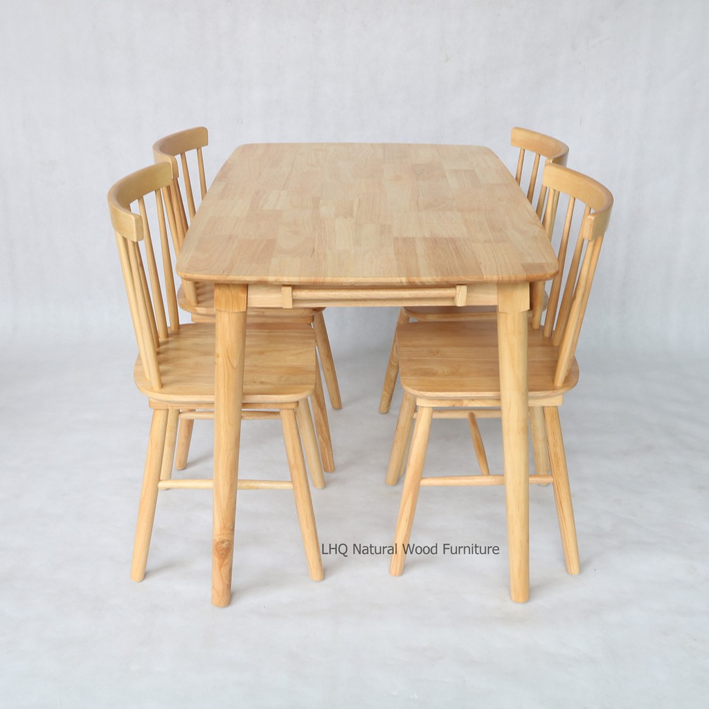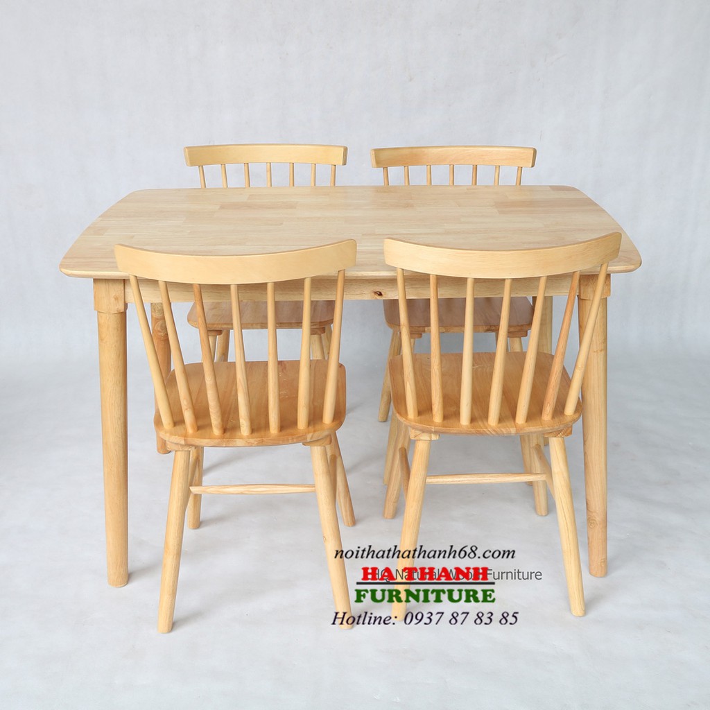 [XẢ KHO HN] Bộ bàn ăn 4 ghế Song tiện gỗ tự nhiên