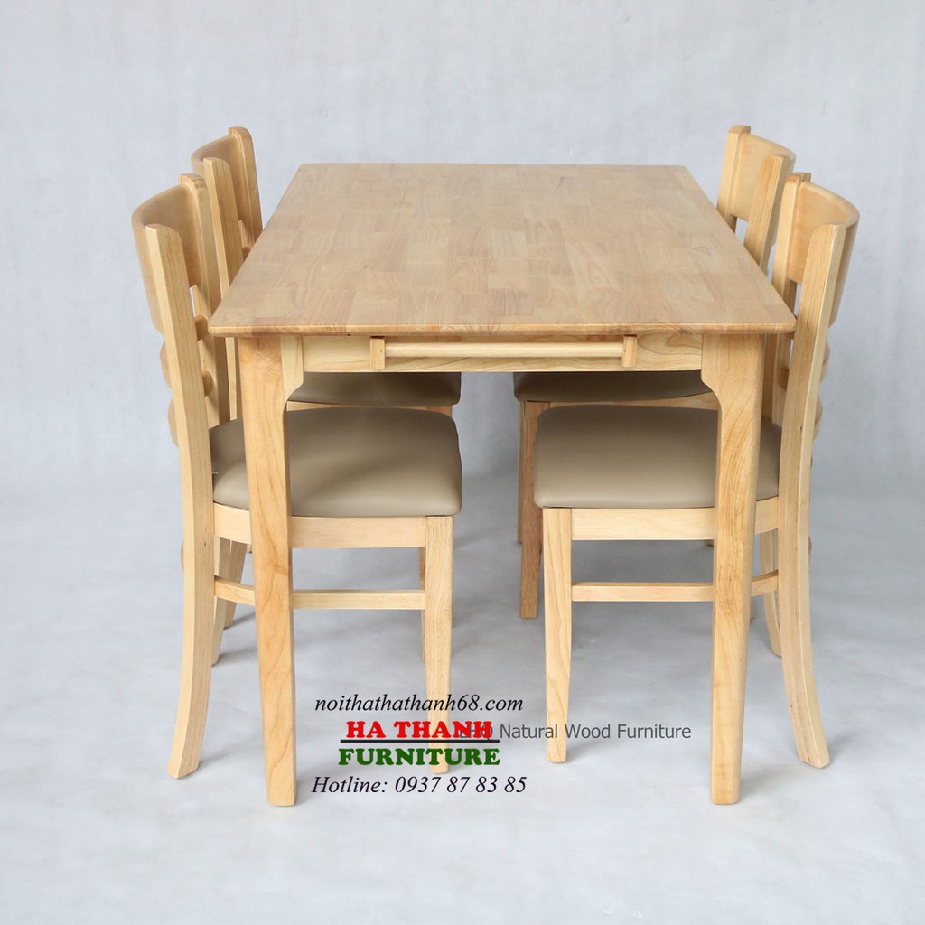 - Chất liệu bàn ghế ăn được làm từ 100% gỗ cao su tự nhiên có khả năng chống thấm, chống mối mọt tốt.