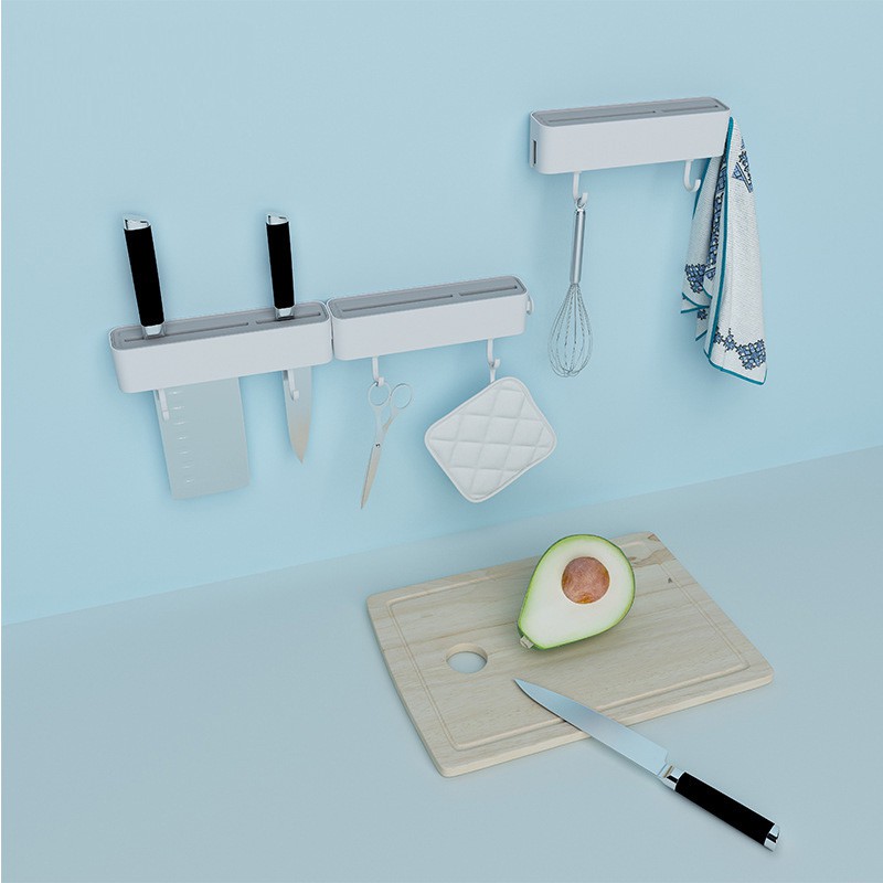 Phần móc treo làm từ nhựa chịu lực tốt, bạn có thể treo nhiều đồ trong nhà bếp như kéo, thìa, dao......