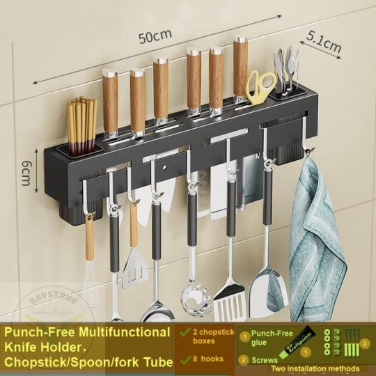 [XÃ KHO] KỆ ĐỰNG DAO KÉO DÁN TƯỜNG VUÔNG, 6 MÓC, 2 MÓC, SƠN TĨNH ĐIỆN [HCM]
