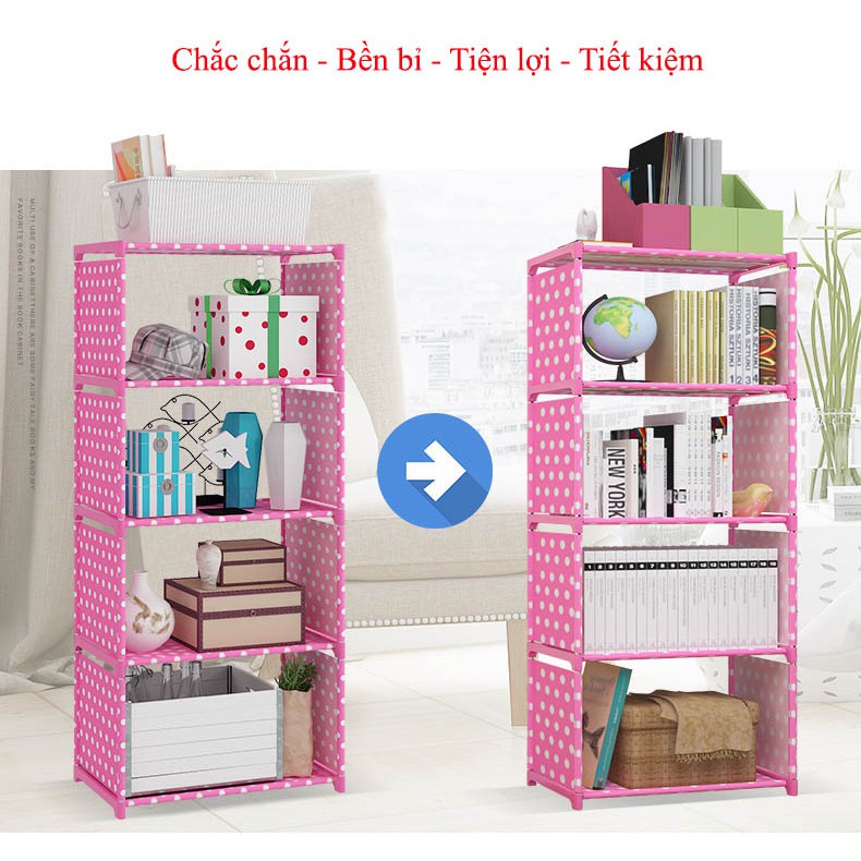 - Kệ 5 Tầng Đa Năng Lắp Ghép Chấm Bi Hồng được thiết kế nhiều tầng nhưng nhỏ gọn chắc chắn giúp bạn sắp xếp gọn gàng các quyển sách, tài liệu hay các vật dụng khác