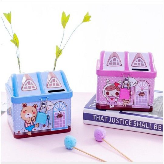 Két sắt mini hình ngôi nhà dễ thương (có khóa) an toàn