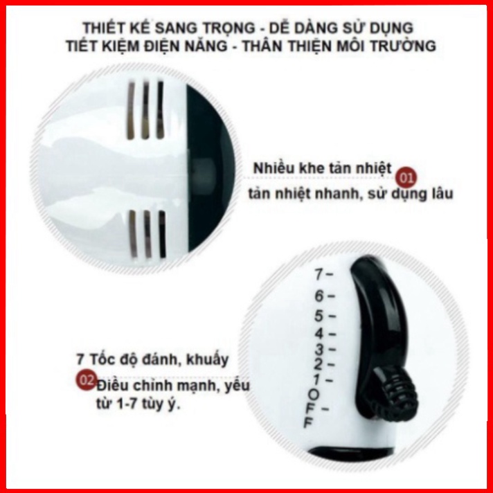 - Máy Đánh Trứng Cầm Tay với 7 tốc độ đánh với công suất cực mạnh lên đến 180W
