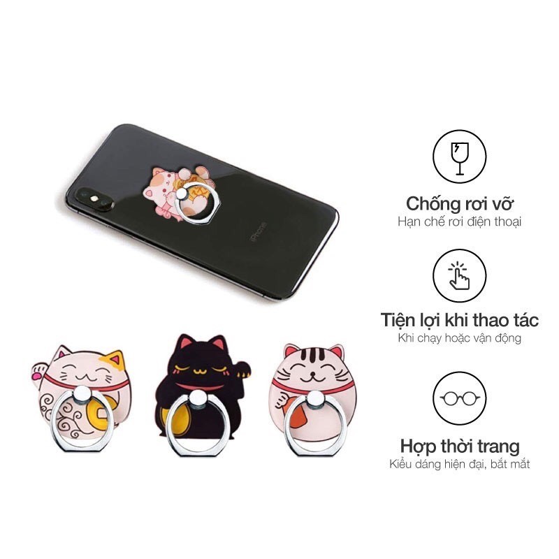 Xả Kho Nhẫn Dán Điện Thoại Hỗ Trợ Móc Ngón Tay Cầm Chắc Chắn 180 Độ