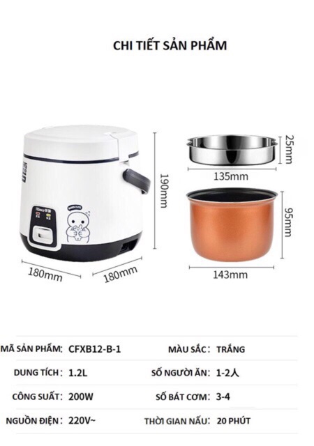 Thích hợp nấu cơm riêng cho bé ăn dặm hoặc sinh viên, ngừoi ở trọ 1 mình, tối đa 4 bát cơm