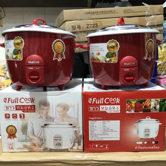 Nồi cơm điện Thái Lan Full Cook 1.8L sản xuất theo công nghệ Hàn Quốc giúp nấu cơm nhanh chóng, tiết kiệm điện năng tối đa nhưng chất lượng cơm rất ngon, hạt nở đều, không dính nồi, an toàn cho sức khỏe người sử dụng.