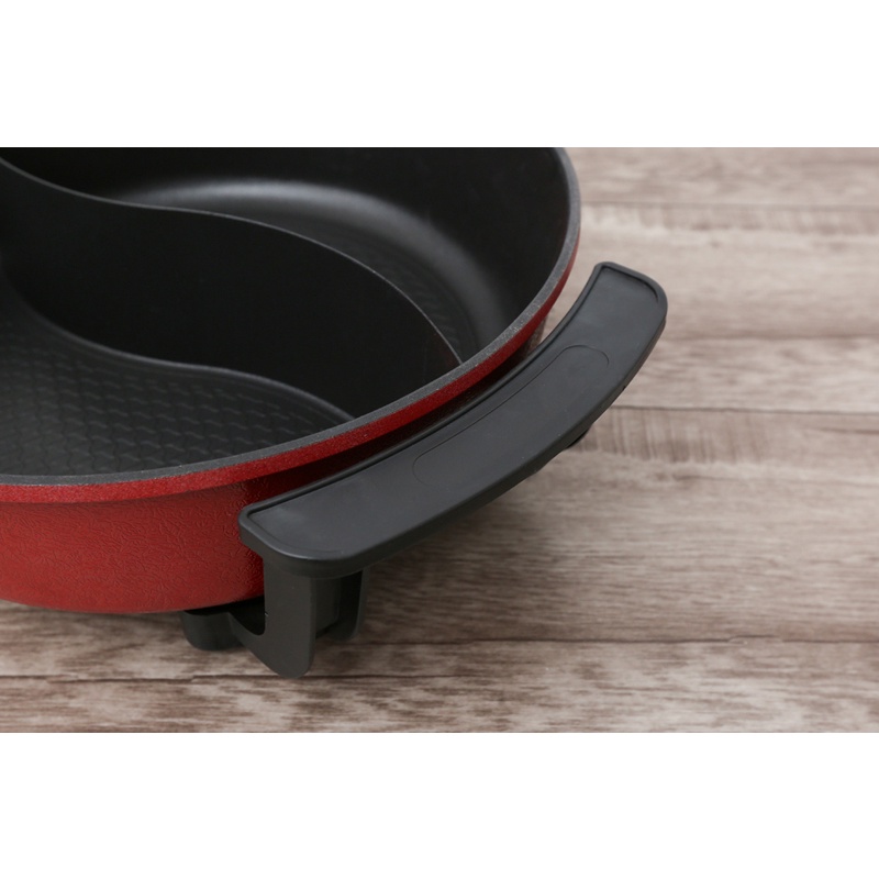 - Nồi đa chức năng, ngoài nấu lẩu còn có thể chiên xào, chiên áp chảo, nướng thức ăn thơm ngon cực chuẩn vị. Điều khiển đơn giản với núm vặn, 5 mức điều chỉnh nhiệt Lòng nồi bằng hợp kim nhôm tráng men chống dính dày bền giúp nấu ăn ngon không lo dính cháy, dễ dàng làm sạch Thiết kế lòng nồi đặc biệt với 2 ngăn, có thể nấu cùng lúc 2 loại lẩu, mang lại sự thích thú và tiện ích cho người sử dụng.