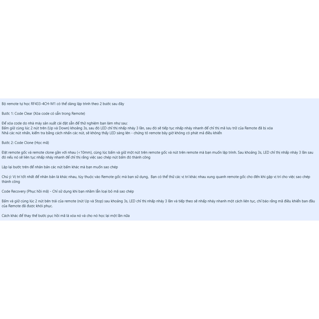 Có khả năng học và copy mã điều khiển từ RF remote khác