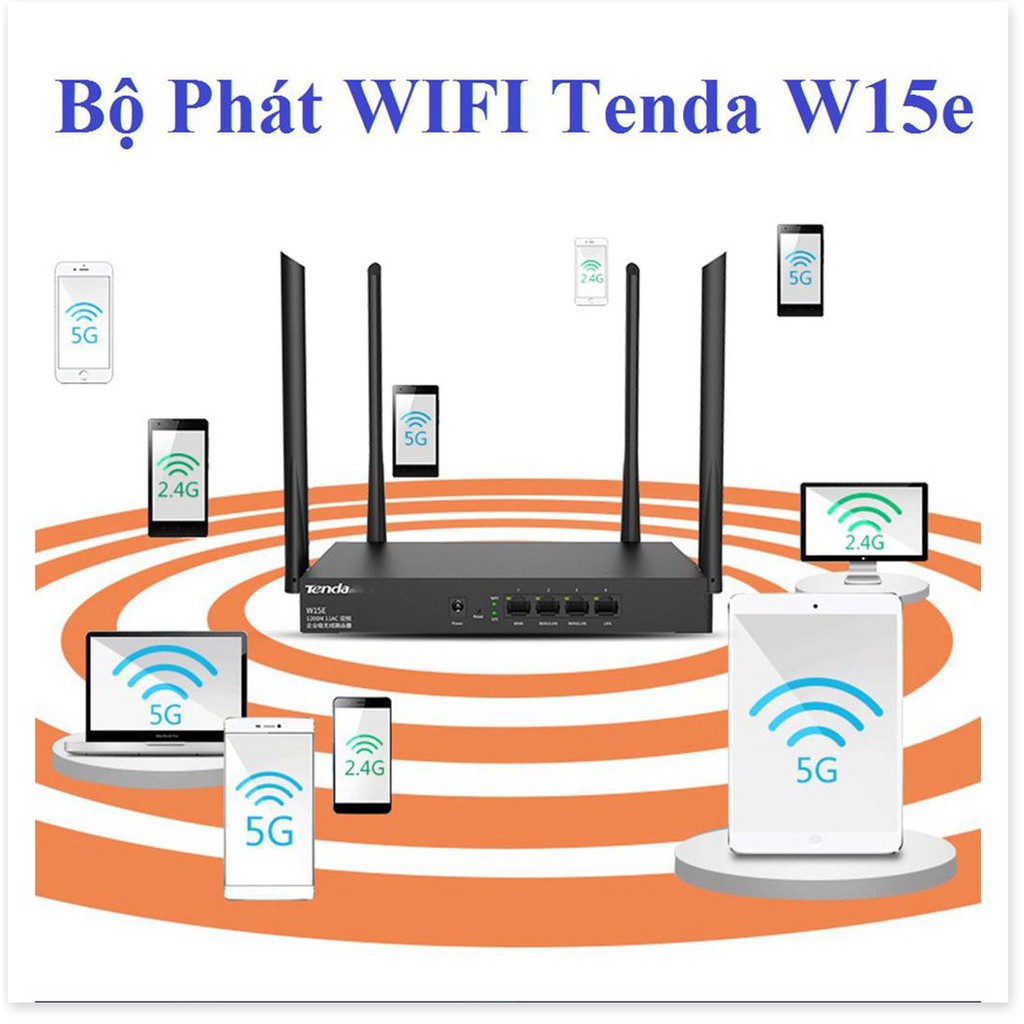 Giới thiệu ( Xả kho sập sàn) Bộ Phát WIFI Tenda W15e Ac1200mps Mạng Doanh Nghiệp 50 User - bảo hành uy tín [SALE LỚN]