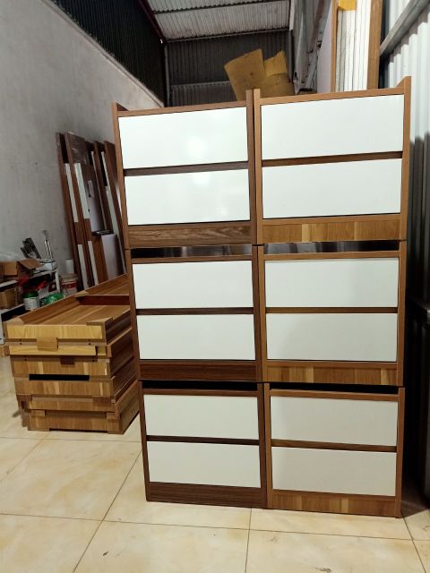 Tủ được làm từ Gỗ MDF phủ melamine chống trầy xước, chống cong vênh