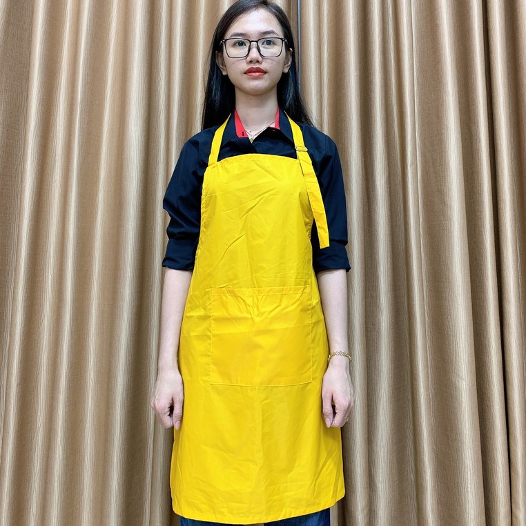 Tạp dề dài với thiết kế đơn giản, dạng tạp dề yếm hay còn gọi là tạp dề đeo cổ. Mang lại nhiều giá trị tiện dụng cho người mặc. Bảo vệ tốt trang phục bên trong hiệu quả, tránh bụi bẩn