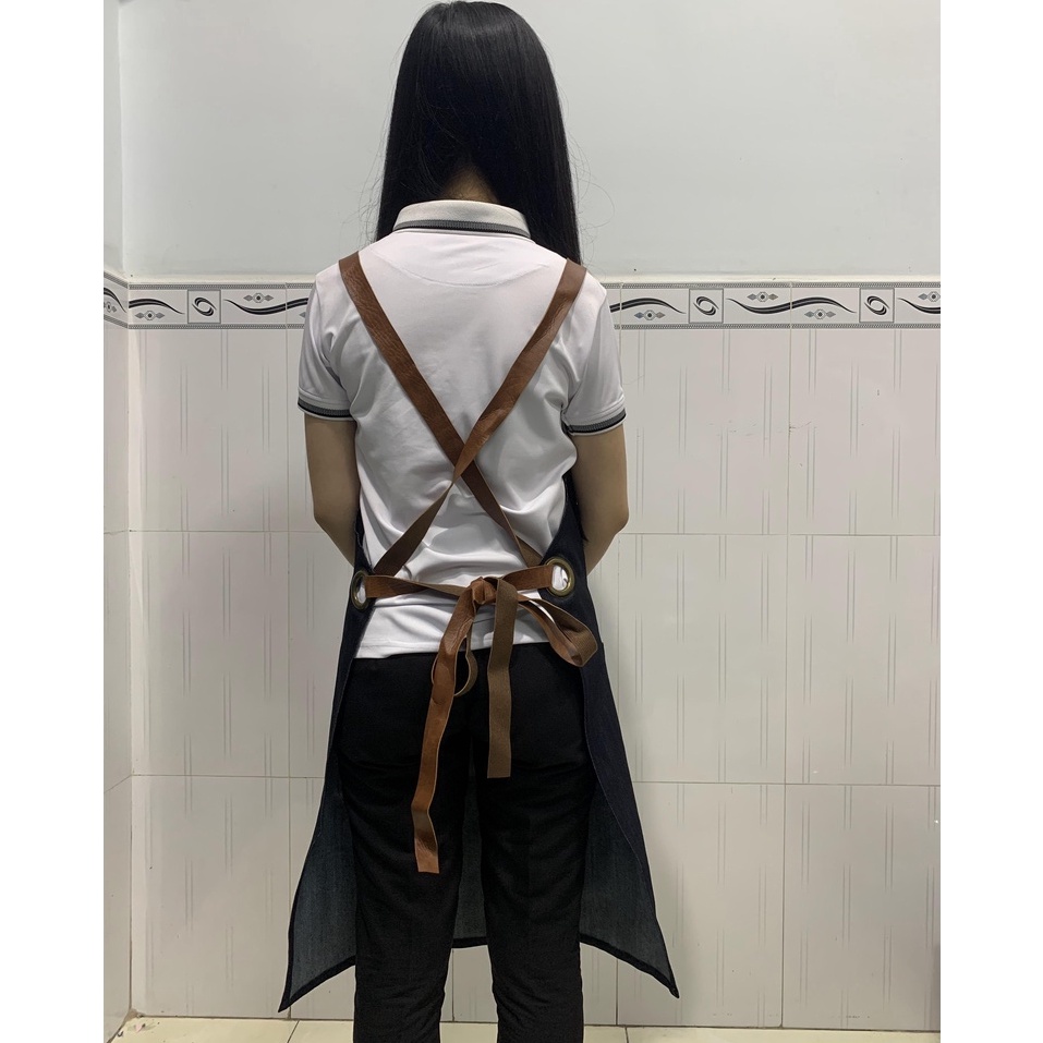 - Tạp dề dài dạng yếm, đeo cổ, có dây cột phía sau, 1 túi phía trước đựng sổ order hoặc các vật dụng hỗ trợ cần thiết. Các đường may kỹ lưỡng, đảm bảo độ bền cao
