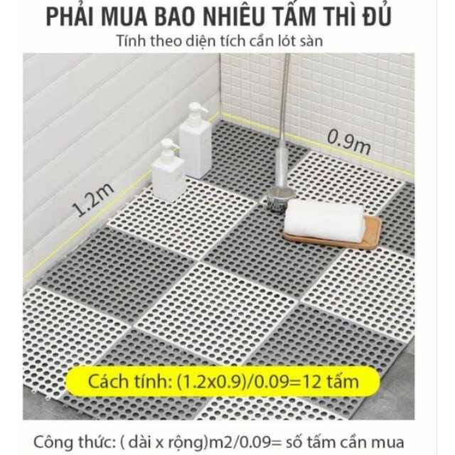Cách tính số lượng tấm = (chiều dài * chiều rộng)/0.09= số lượng tấm cần mua