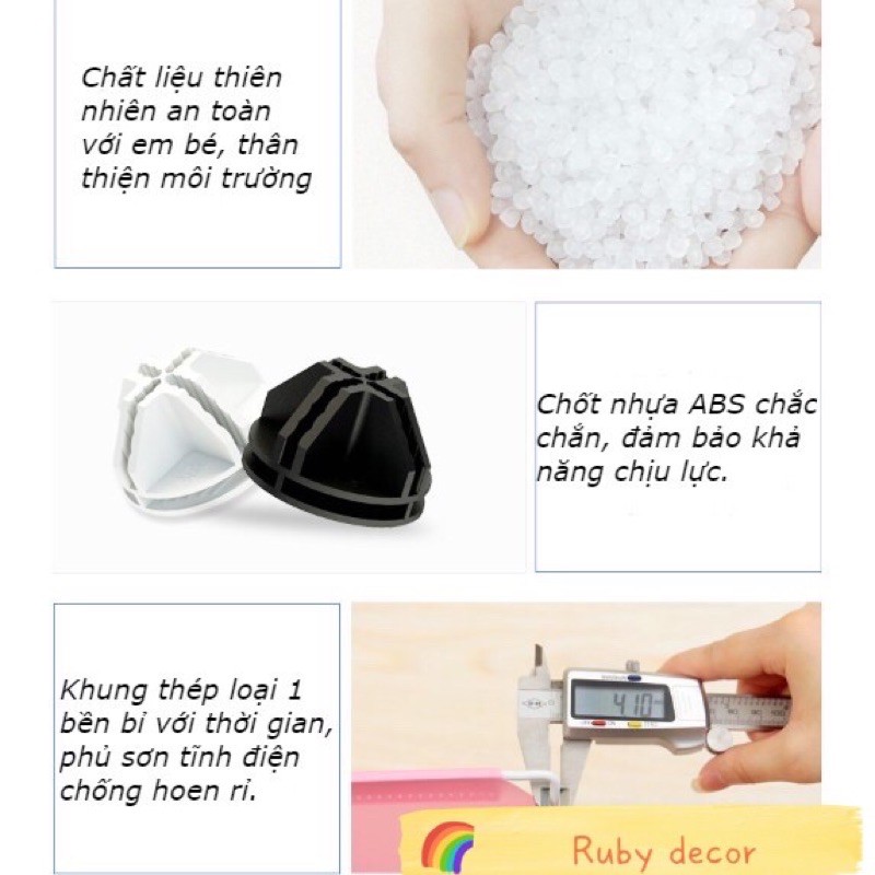 ✅ Khung thép quanh tấm ghép có đường kính 4mm, sơn tĩnh điện, bảo đảm thẩm mỹ và chống han gỉ.